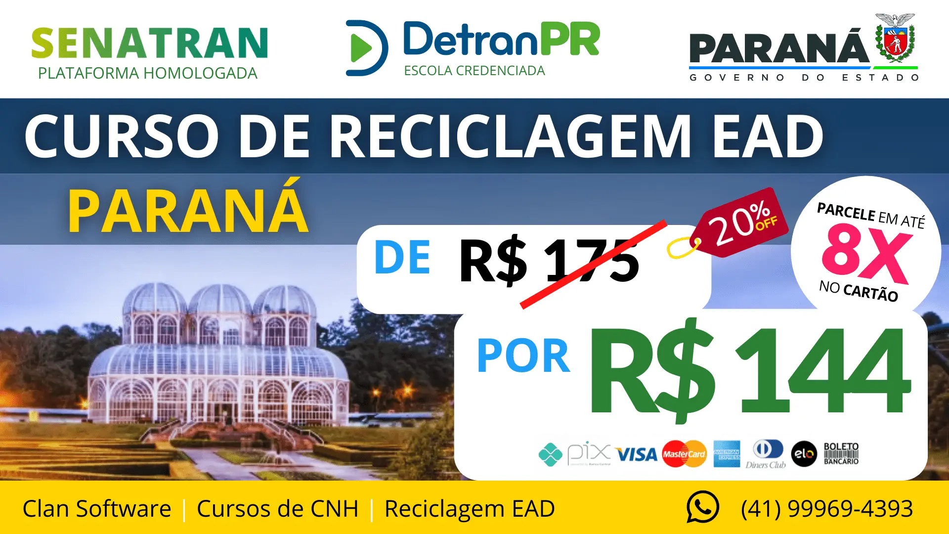 O Curso possui uma prova simulada, com 30 questões e 60 minutos para resolver, similar a prova que será realizada no DETRAN.